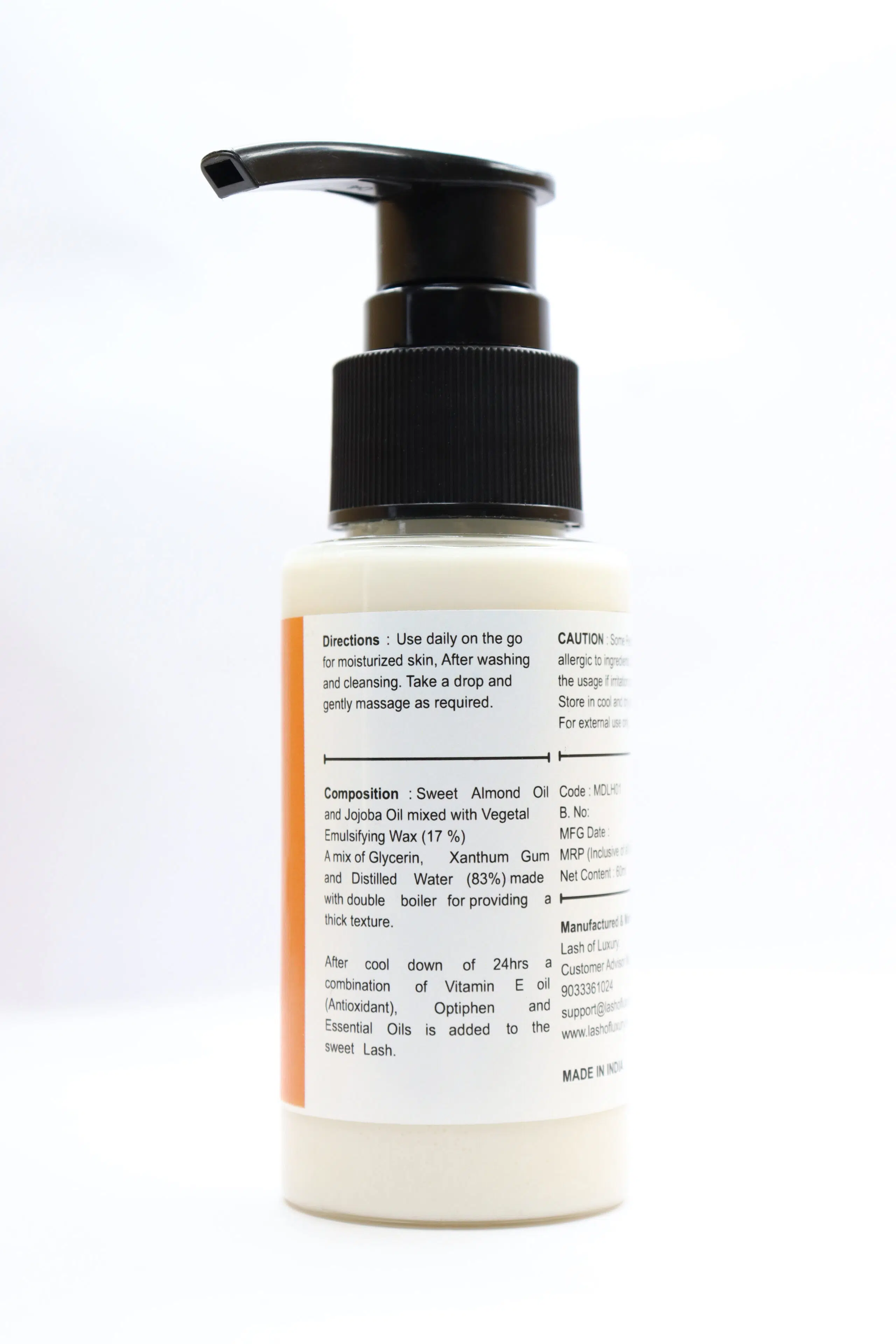 Lash’s Nourishing and rich Body Lotion has goodness of honey with soothing scent of vanilla. It contains beeswax , cold pressed coconut oil that helps defend against microorganism that are damaging the skin.